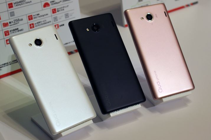 カラーバリエーションは左から、ホワイト、ブラック、ピンクの3色。Quaシリーズの特徴である背面のデザインは継承されている