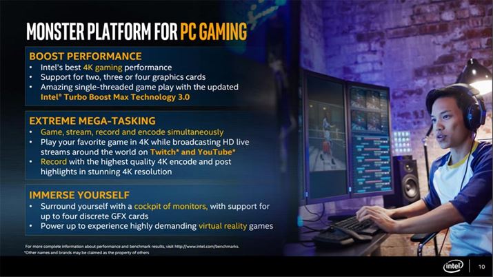 ライバルのAMDも、16コア32スレッド対応の「Ryzen Threadripper」を今夏発表予定であることをすでに明らかにしているが、「Core i9 7980X Extreme Edition」はそのスペックを上回る形で発表された。これまでコンシューマー向け最上位CPUモデルとして展開していたものが10コア/20スレッドであったことを考えると大幅なスペック引き上げで、AMDの「Ryzen Threadripper」を強く意識したのは間違いなさそうだ。