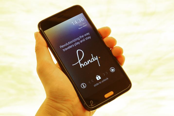 handyはすでに世界17カ国、600のホテルの11万の客室へ導入されており、ザ・リッツ・カールトンやヒルトン、ハイアットなど一流ホテルにも採用されている。handyスマートフォンの対応言語は、これまでは英語と中国のみであったが、今回の日本導入にあたって日本語が新たに追加された。