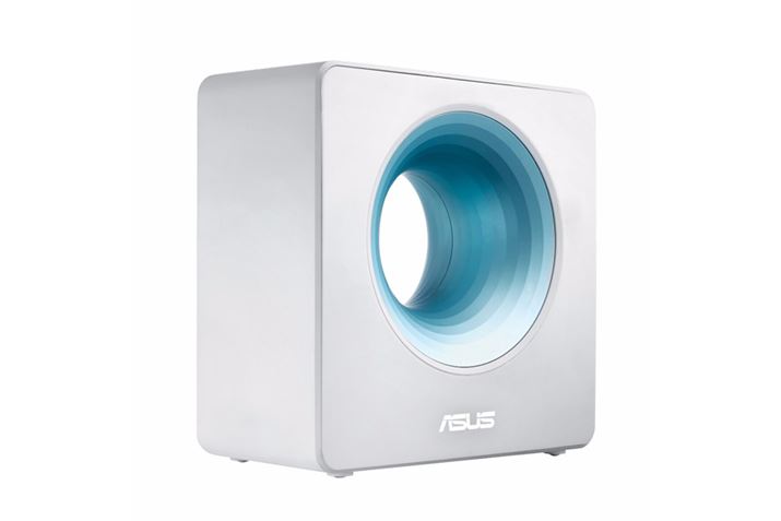ダイソンの羽根のない扇風機を想起させるWi-Fiルーター「Blue Cave」。本体内部に4本のアンテナを内蔵し、IEEE 802.11a/b/g/n/acに対応。ホームネットワーク向けのセキュリティシステム「ASUS AiProtection」を搭載し、ネットワーク内のPCやスマートフォンのほか、IoT機器も保護します。また、ほかのサービスと連携するIFTTTもサポートしているとのことです