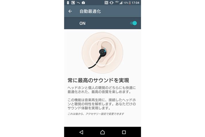 音質を自動で最適化する「自動最適化」機能。手持ちのイヤホン・ヘッドホンをいくつか試したが、比較的安価なもののほうが効果を感じ取りやすかった