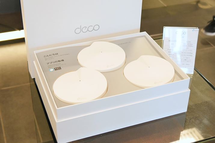 「Deco M5」は、複数台を連携させることで広範囲にWi-Fiを提供できる、独自のメッシュネットワーク技術を搭載した無線LANルーター。ローミングも可能な中継機能を備えており、単体でも使えるほか、最大10台までの連携が可能だ。同社によれば、3台合わせれば最大420m2(バスケットコート1面程度)をカバーできるという。また、連携時は、最も強い信号を出すユニットへデバイスを自動的に振り分け、家中どこでも通信が途切れることなく、安定したインターネット接続が行えるという。