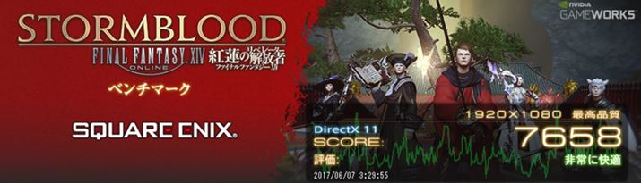 「ファイナルファンタジーXIV 紅蓮のリベレーター」のベンチマーク結果は「7658」となった。このスコアなら快適にゲームを楽しむことができる