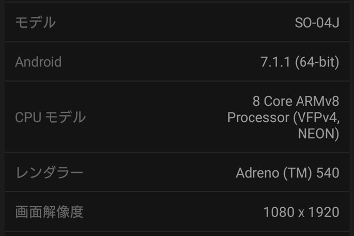 Antutuベンチマークでデバイス情報を表示させてみた。画面解像度は1080×1920のフルHD表示として認識されている