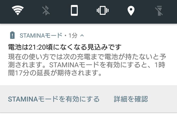 バッテリーがなくなる時間を予想して通知する「スマートSTAMINA通知」。利用パターンなどを随時考慮して、予想時間は細かく修正される
