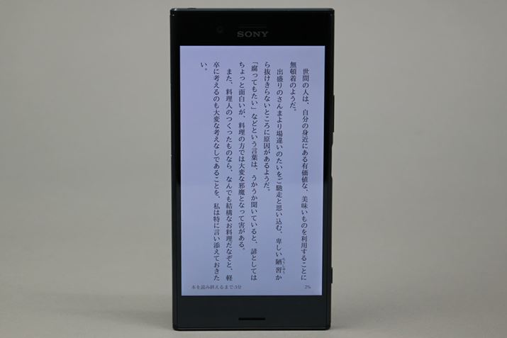 電子書籍アプリなどはフルHDで表示される。5.5インチというサイズの制限があるので、活字の表示に粗さは感じられず、十分な表示能力がある