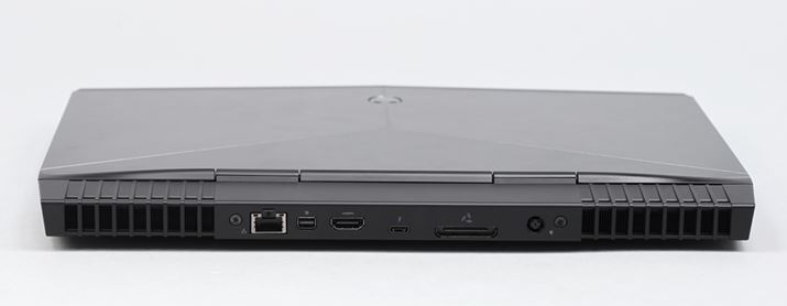 背面に有線LAN、Mini DisplayPort1.2、HDMI2.0、Thunderbolt 3、ALIENWARE Graphics Amplifier接続用ポート、電源端子を備える