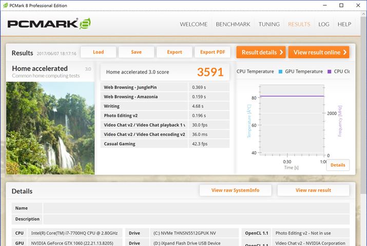 パソコンの総合性能を測定するFuturemark「PCMark 8 Professional」(Home accelerated)の結果。ゲーム以外の用途でも快適に使える性能だ