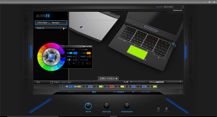 「ALIENWARE Command Center」でキーボードなどのイルミネーションを管理できる。電源管理ツールやパフォーマンスを監視するツールなども備える