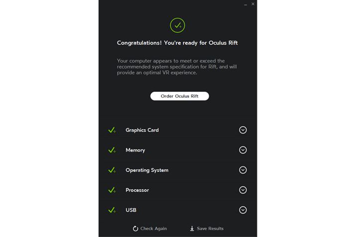 「Oculus Rift」が動作するかどうかを調べられる公式ツールでチェックしてみたところ、必要な性能は満たしていた