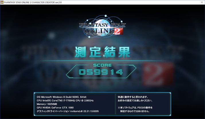 「ファンタシースターオンライン2」の公式ベンチマークでも「快適に動作すると思われます」という結果を得られた