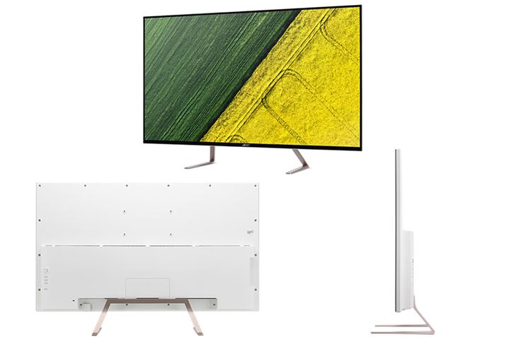 Acerの4K液晶「ET」シリーズの第1弾製品となる「ET430K」は、ハーフグレア(半光沢)タイプのIPSパネルを採用した43型液晶ディスプレイ。多機能ではないが機能に不足はなく、超解像技術や最大2画面同時表示できる「ピクチャーインピクチャー(PIP)」や「ピクチャーバイピクチャー(PBP)」も備える。また、ケーブル1本でマルチディスプレイ環境を構築できるDisplayPort出力も搭載している。映像入力は、HDMI ×2、DisplayPort×2(入出力が各1基)。ちなみに、ボディ背面が白になっており、ディスプレイの中では比較的オシャレなデザインなのもポイント。
