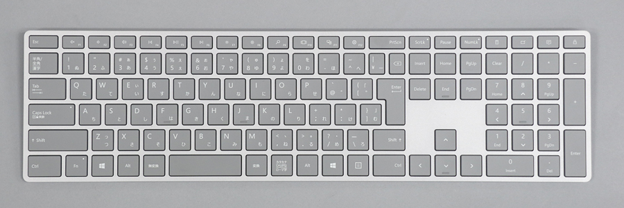 Surfaceキーボードは、Surface Studioと統一感のあるカラーリング。オーソドックスなキー配列だが、BackSpaceキーが小さい