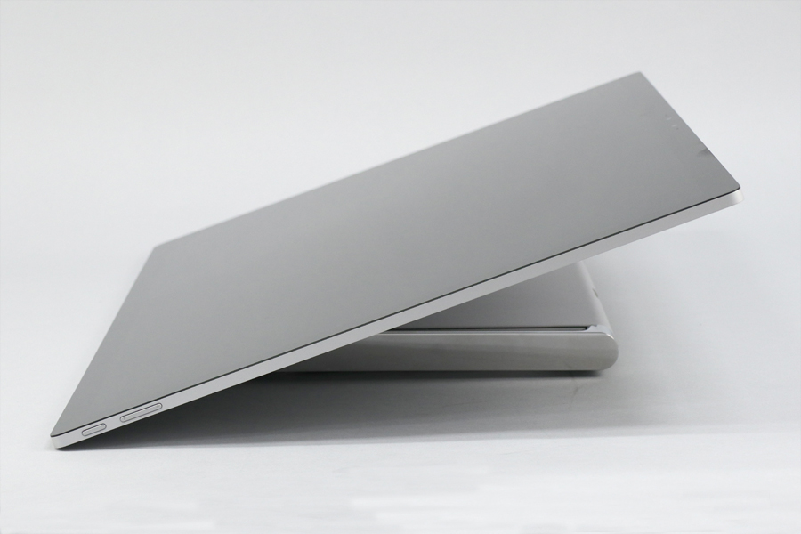 ゼログラビティヒンジと名付けられたヒンジにより、ディスプレイを軽い力で倒したり、起こしたりできる。ディスプレイを起こした状態で、強めにタッチ操作をしてもディスプレイが倒れることはない
