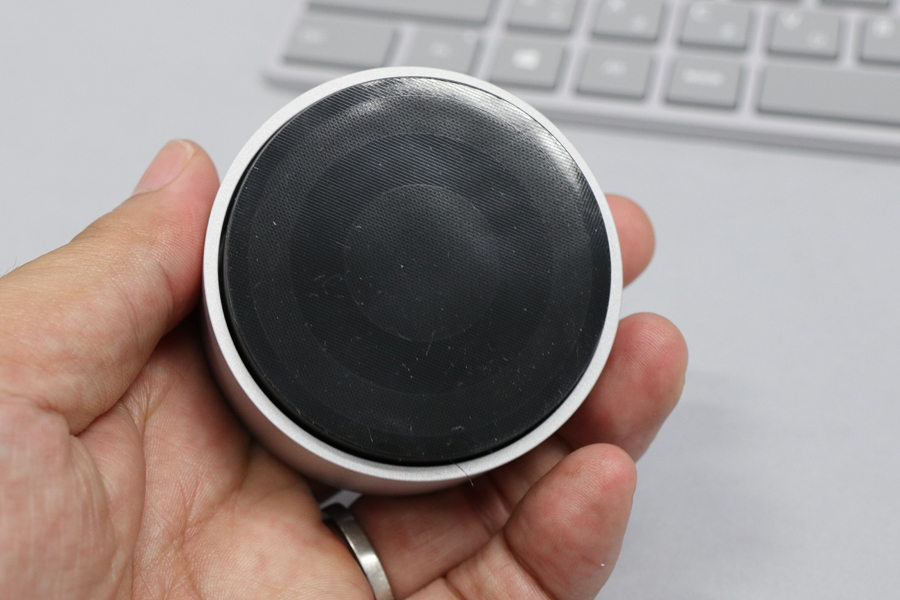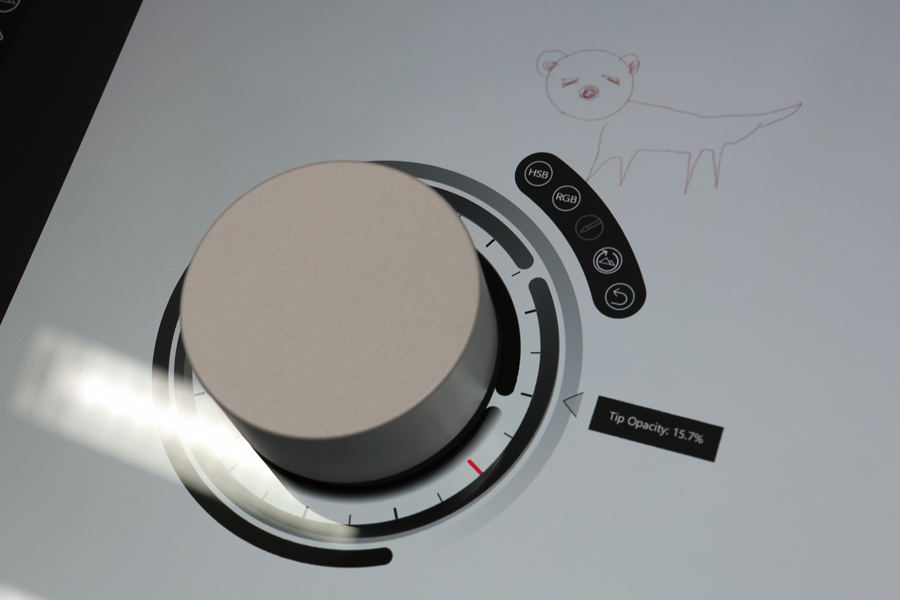 キーボードとマウスはシンプルでいい意味で“普通”だが、オプションで用意される「Surface Dial」(直販価格は税込11,664円)は面白い。回したり、押したりして使うもので、たとえば、Webブラウザーであれば、ダイヤルを回すとスクロールなどできる。イラスト系のアプリなら、線の太さや色を、ダイヤルを回すことで変更できる。メニューバーやツールバーから変更するよりも直感的に変更することが可能だ。Surface Dialは底面が吸盤のようになっており、ディスプレイの好きなところに置いて使える。押し込むとSurface Dialの周囲にメニューが表示され、回して機能を選択する。さすがにディスプレイを90度にすると落ちてしまうが、スタジオモードにすれば安定して置ける。また、ディスプレイではなく机の上でも使用可能だ。この場合は、円形のツールがディスプレイ上に表示される。Surface Dialは、新しい操作スタイルなので、アプリ側の対応やユーザーの慣れが欠かせない。登場したばかりで、良し悪しは判断しにくいが、今後どのように進化し、どう使われていくのか注目したい。