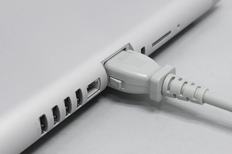 底面には4つのゴム足がある。摩擦を抑える加工が施されており、軽い力で回転できる。背面にある外部インターフェイスに周辺機器などを接続する場合にも苦労しない