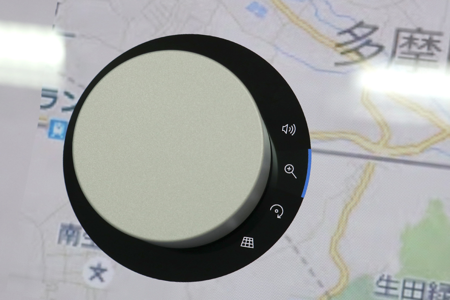 Windows 10のマップアプリでは、Surface Dialを使って、地図を回したり、拡大したりできる