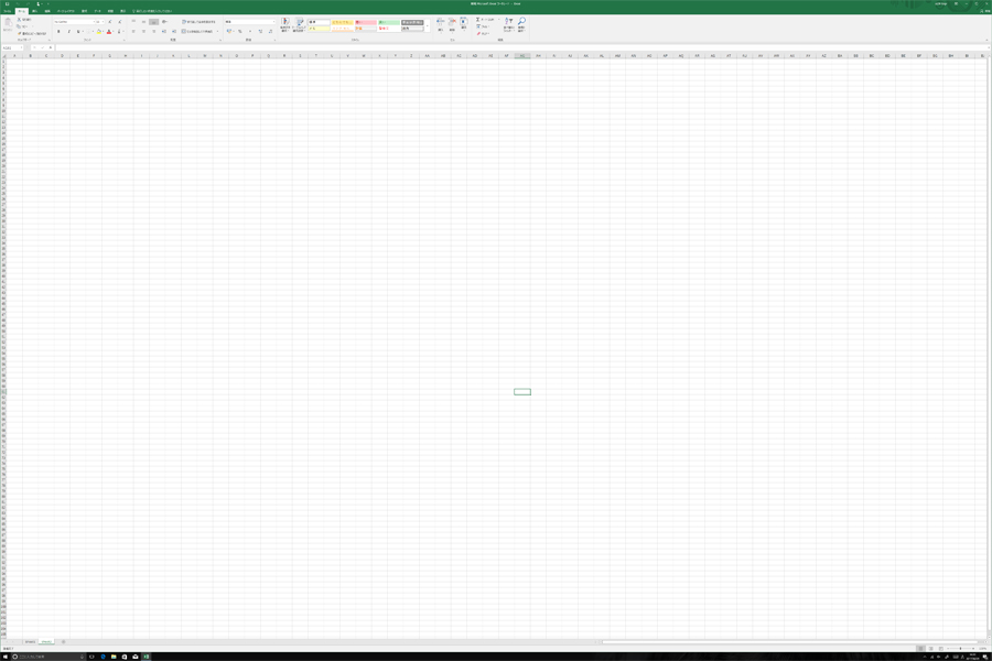 スケーリングを100%に設定し、Excelを立ち上げると、BJ列・105行まで表示できた
