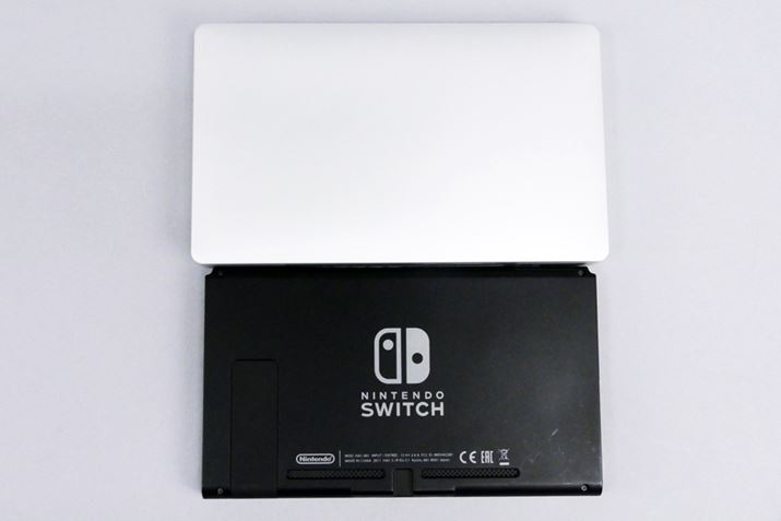 本体サイズは180(横)×106(奥行き)×18.5(厚さ)mmで、重量は約480g。同じくらいの大きさのものがないか探していたところ、ちょうどよかったのが「Nintendo Switch」。左右のJoy-Conを取り外したときの大きさは、「GPD Pocket」と同じくらいでした