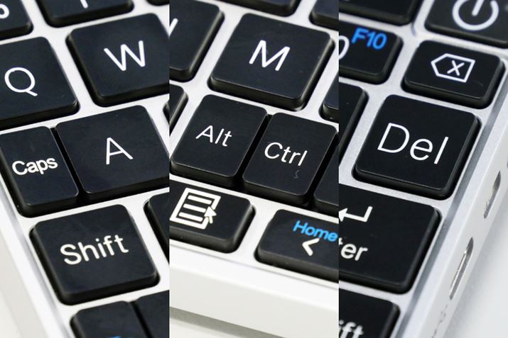 キーボードで使いづらかったのは、Caps LockとA(写真左)、AltとCtrl(写真中央)。キー間にスペースがほとんどないので誤入力しやすいです。また、Enterの上にDeleteがあるため(写真右)、BackSpaceと間違えて押してしまうことが多々ありました