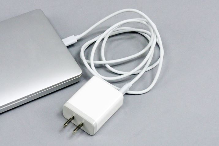 同梱されているUSB Type-Cケーブルとアダプターを使って給電。外出先でバッテリーが切れても、モバイルバッテリーなどで給電することもできます。