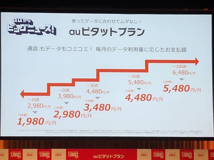 当初12か月分について毎月1,000円の割引が適用される「ビッグニュースキャンペーン」は、「auピタットプラン」のほか後述する「auフラットプラン」にも適用される