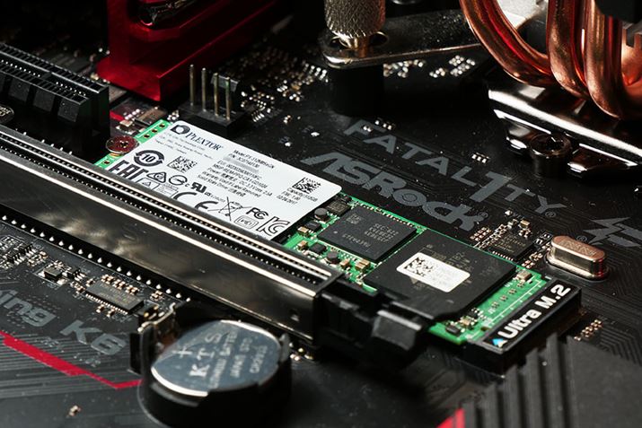 続いて検証環境を紹介しよう。ヒートシンクを取り付けるM.2 SSDは、プレクスターの「PX-8SeGN」(512GBモデル)。インターフェイスはPCI Express 3.0 x4に対応。シーケンシャル転送速度は、リード2400MB/秒、ライト1000MB/秒で、Marvell製コントローラーと東芝製TLC NANDを基板片面に実装している。後述するATTO Disk Benchmarkのスコアでも公称値通りの性能を発揮している。これをデータドライブ(D:)として接続してテストを行った。