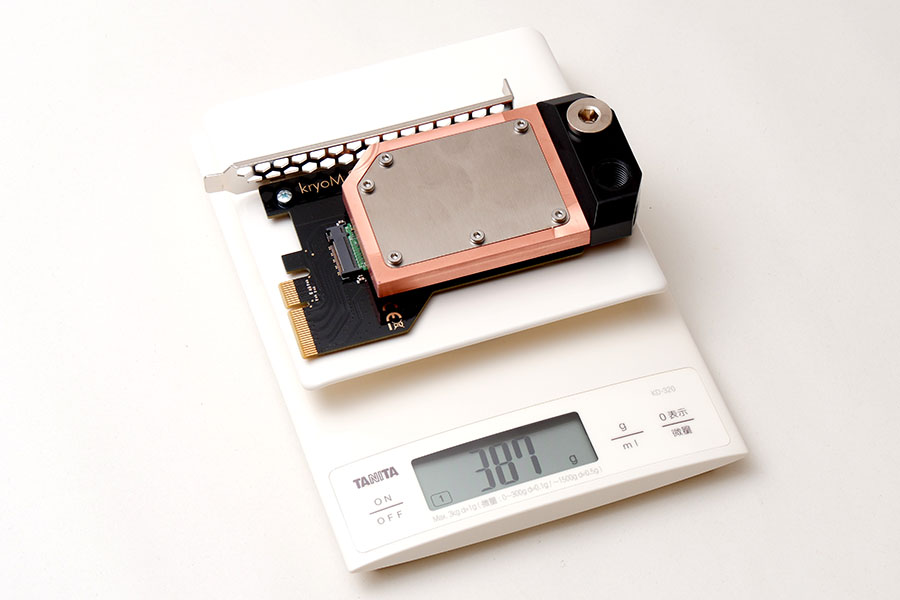 SSDに取り付けた状態での総重量は387g。今回チェックした製品の中では一番重かった