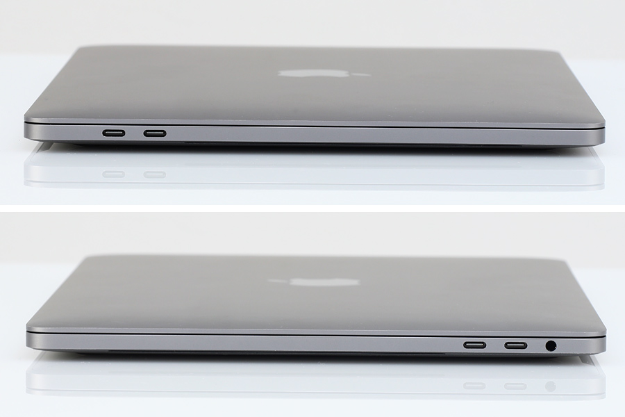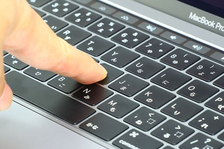 MacBook Pro 13インチモデル(Touch Barなし)は、旧世代のキーボードを搭載。キーストロークが少し浅く、強めにタイピングする人だと、底につく感じがあるかもしれません