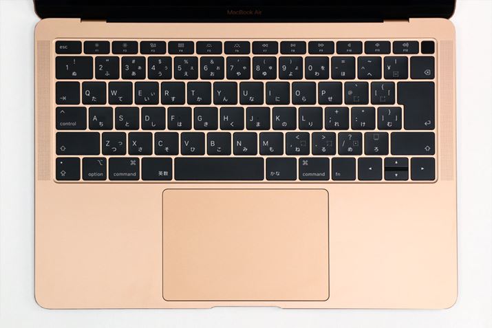 MacBook Airは最新世代のキーボードを搭載しており、ストロークの浅さを感じさせない打ち心地です。ほかのモデルよりもFnキーが大きいのも◎。本体が少し傾斜しているのも入力性能を高めている要因のひとつ