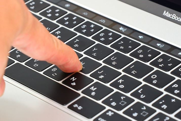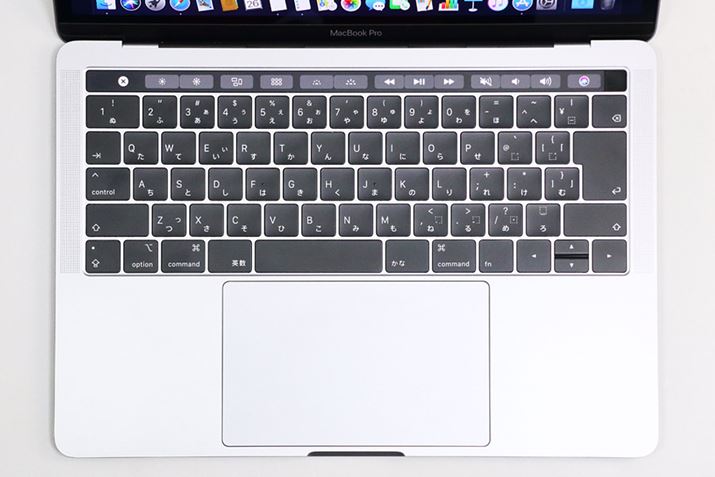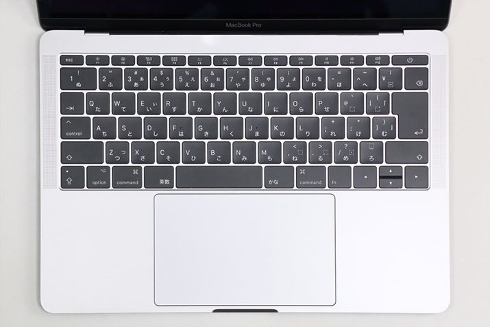 MacBook Pro 13インチモデル(Touch Barあり)は、最新世代のキーボードを搭載しており、ストロークの浅さを感じさせない、しっかりとしたクリック感があります。底につく感じもありません。本体に厚みがあるためか、安定感もあり、打鍵音も静かです