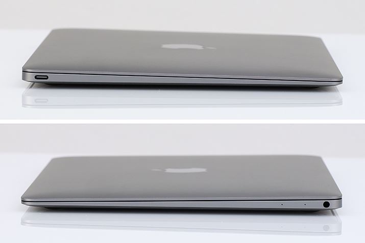 MacBook。左側面にひとつのUSB Type-Cポートを搭載。仕様としてはUSB 3.1 Gen1(最大5Gbps)をサポート。映像出力はDisplayPort 1.2