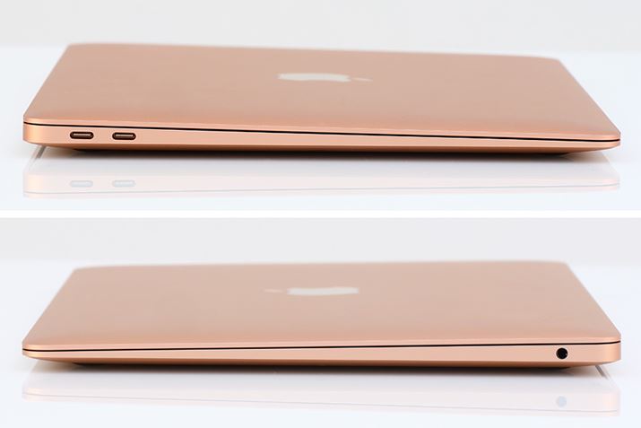 MacBook Air。左側面に2つのUSB Type-Cポートを搭載。その仕様は、USB-C 3.1 Gen2(最大10Gbps)/Thunderbolt(最大40Gbps)。充電、映像出力にも利用します