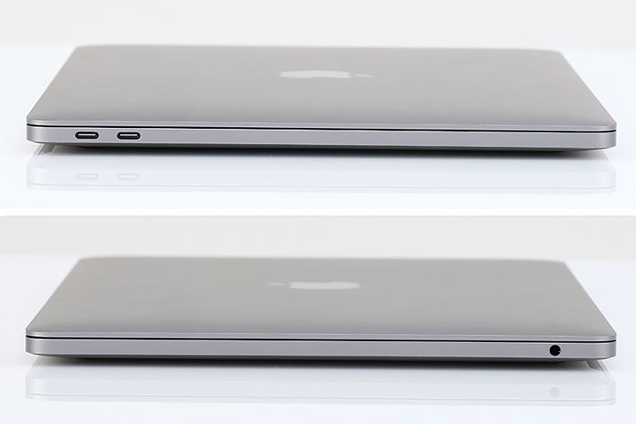 MacBook Pro 13インチモデル(Touch Barなし)。左側面に2つのUSB Type-Cポートを搭載。その仕様はUSB-C 3.1 Gen2(最大10Gbps)/Thunderbolt(最大40Gbps)
