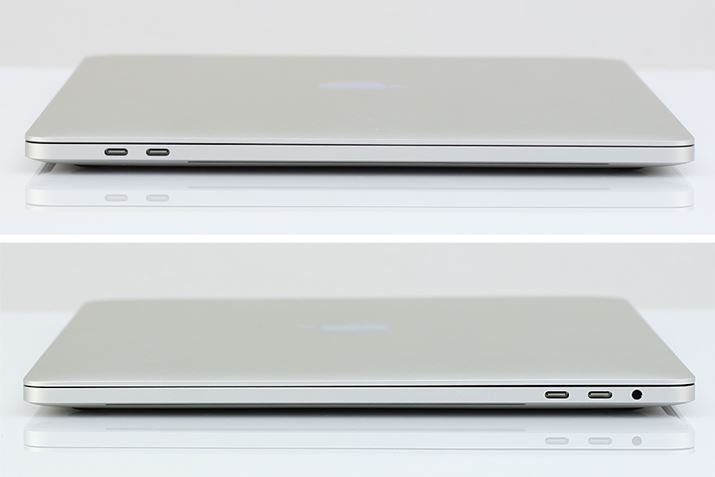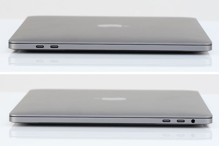 MacBook Pro 15インチモデル。左側面に2つ、右側面に2の合計4つのUSB Type-Cポートを搭載。その仕様はUSB-C 3.1 Gen2(最大10Gbps)/Thunderbolt(最大40Gbps)
