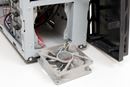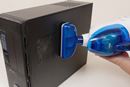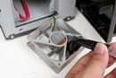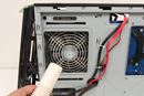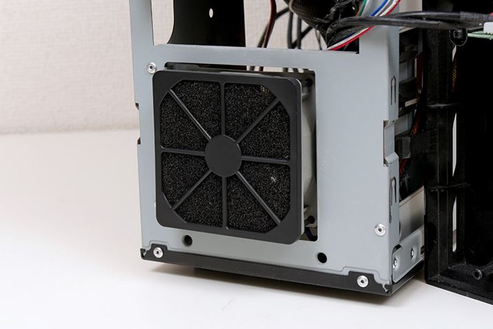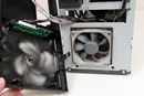 ある程度きれいになったら次はケースファンを外す。ホコリの付着が多い吸気側はできる限り外し、排気側は汚れ次第で取り外す(あまり汚れてない場合はそのままでも問題なし)。ファンのブレード(羽根)に付くホコリはバキュームアタッチメントキットのブラシで軽くこするだけできれいに取れる。このとき強くこすり過ぎると、ファンの回転軸が歪んだり、内部の回転機構にホコリが侵入し、回転不良につながることもあるので、できるだけやさしく行うのがコツだ。