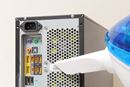 掃除を始める前にまず行うのがPC本体の電源ケーブルを抜くこと。デスクトップパソコンは大容量の電源ユニットを内蔵しているため、電源をオフにしていても内部に電気が残っていることがある。ふとしたことで通電する恐れがあるので、早めに抜いて放電しておこう。その間にほかのインターフェイスケーブルを抜く。抜線後は電源スイッチを押して、LEDが光ったりファンが回転しなければ問題ない。