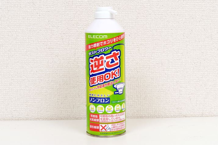 PC掃除の定番と言えるエアダスター。逆さにしても使える製品のほうが使い勝手がいい。
