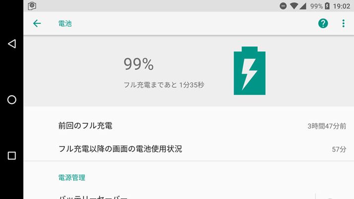 バッテリーの持続性も少し向上している。また、通知バー部分にバッテリーの残量をパーセントで表示できるようになった