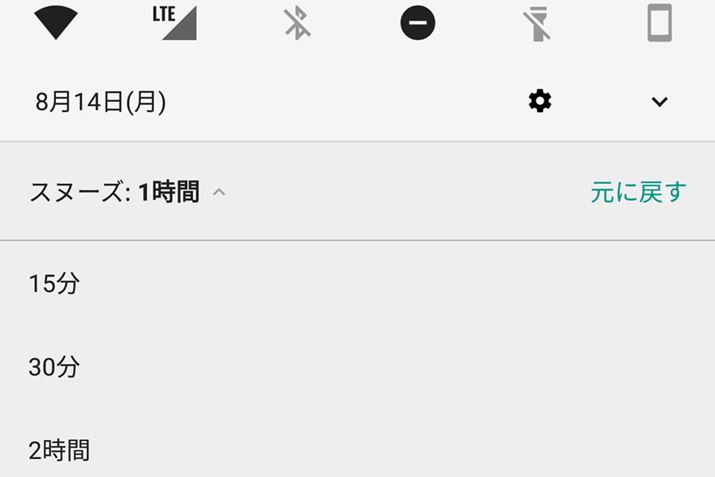 通知を一時的に停止するスヌーズ機能も搭載され、プルダウンの通知メニューから簡単に設定できるようになった