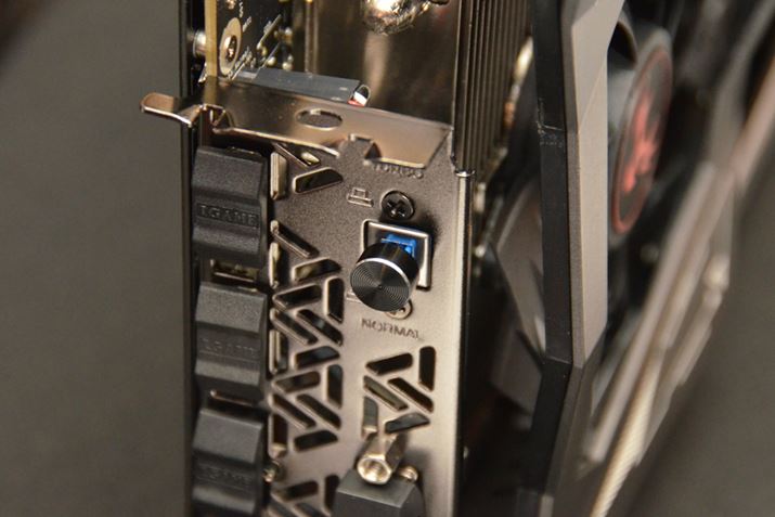OC設定ボタンはブラケット部に用意されている。スイッチが押しこまれた状態だとOCがOFFに、リリースされた状態だとOCがONになるとのこと