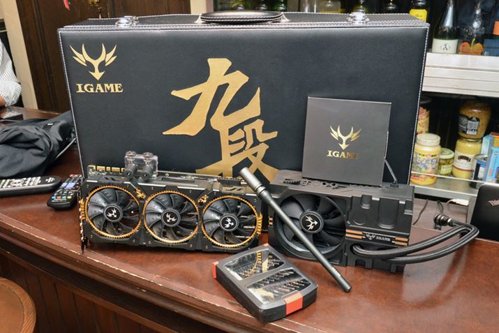 空冷と水冷のハイブリッド冷却に対応した超ハイエンドモデルの「iGame GTX1080Ti Kudan」。ベースクロック1657MHz、ブーストクロック1784MHzというのは、現行のメーカー製カードのOC設定では最高値だという