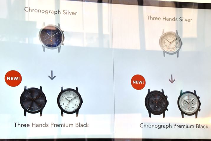 今回発表された4モデルのひとつ「Chronograph Premium Black BD beams edition」。4モデルともに、「wena wrist」のステンレスバンドや「wena wrist leather」を装着できるヘッドのみの販売となる