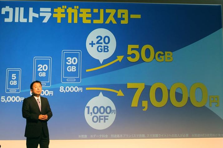 また、2016年9月に発表された、大容量のデータプラン「ギガモンスター」の一部が見直しされることも発表された。見直されたのは容量30GB(税別月額8,000円)のプランで、通信容量を50GBに増量しつつ、料金を1,000円値下げた月額7,000円(税別)とした「ウルトラギガモンスター」に生まれ変わった。
