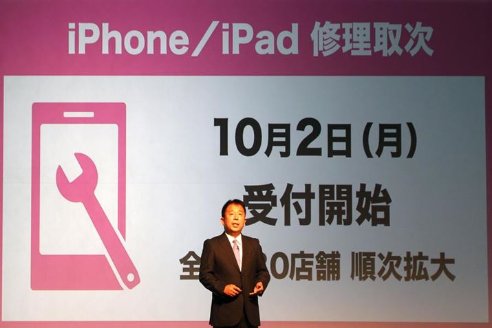 このほか発表された新サービスとして、従来はアップル任せだったiPhoneおよびiPadの端末修理の取り次ぎを10月2日より全国180のソフトバンク店舗で開始する。なお、対応する店舗は順次増やしていくとのことだ。