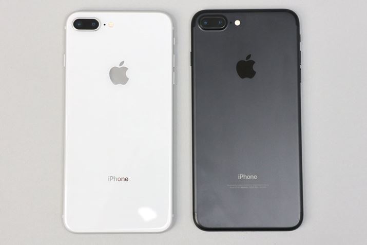 左がiPhone 8 Plus、右がiPhone 7 Plus。背面が金属からガラスに変わり、質感ががらりと変わった。写真では伝わりにくいので、ぜひ実物を見てもらいたい