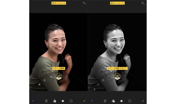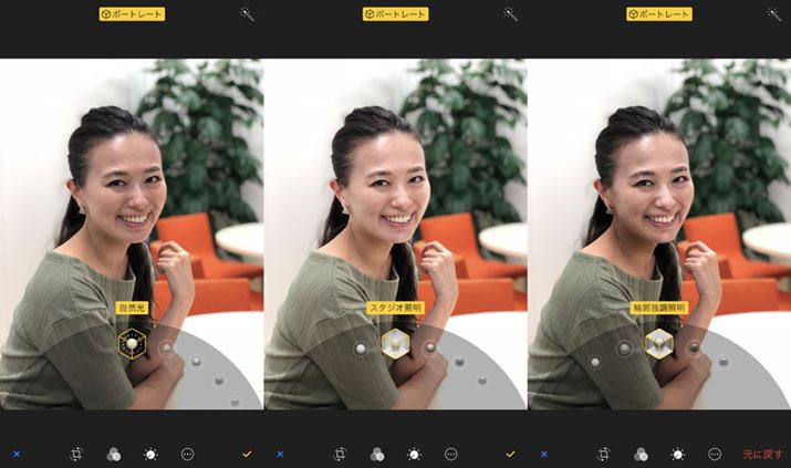 さらに、iPhone 8 Plusでは、ポートレートモードの派生機能として「ポートレートライティング(ベータ版)」という新しい機能が追加されている。スタジオの照明を再現するユニークな機能だ。深度を計算する「Depth API」を使ったもので、人物の鼻の高さや頬のくぼみ具合などの情報を下に、光りを調整してくれる。すごそうな機能だが、使い方はポートレートモードで撮影し、照明の効果を選ぶだけ。深度情報が正しく取れず、背景をうまく切り取れないシーンも見られたが、バシッと決まったときは、なかなか気持ちいい。