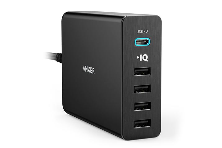 AnkerのACアダプター「PowerPort+ 5 USB-C USB Power Delivery」は、USB PD対応のUSB Type-Cポートに加えて、2.4Aの出力に対応するUSBポートを4基搭載する