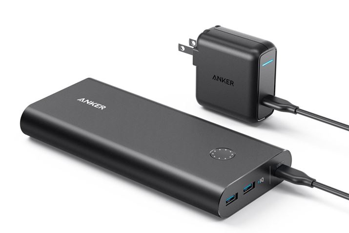 USB PDに対応するAnker製のモバイルバッテリー「PowerCore+ 26800 PD」。ノートPCで使うことを想定しているため26,800mAhというかなり大容量