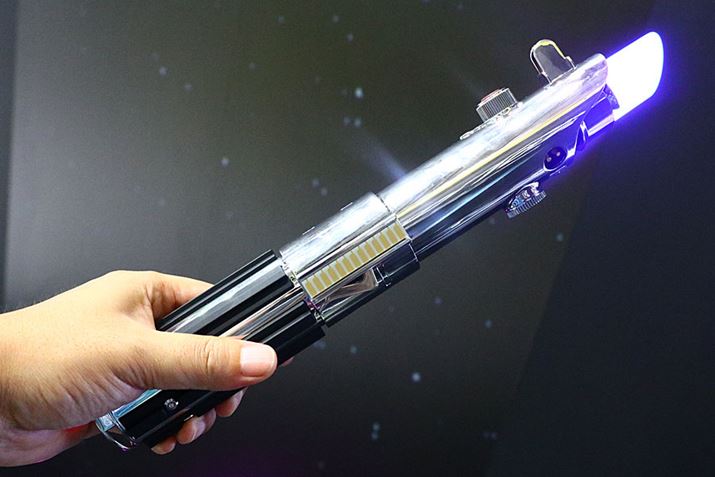作中のライトセーバーを模したライトセーバー・コントローラー。見た目よりも軽く、重量は約275g。子どもに与えたら、ずっと振り回していそうなアイテムだ